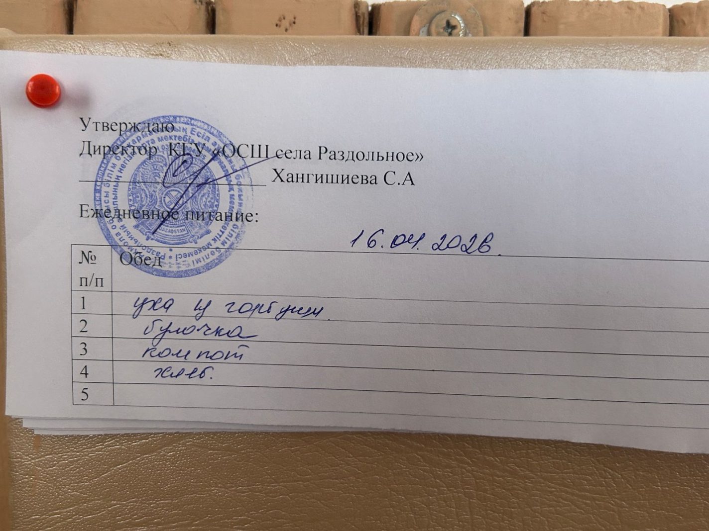 Мектептегі тамақтану 16.04.2026 ж.