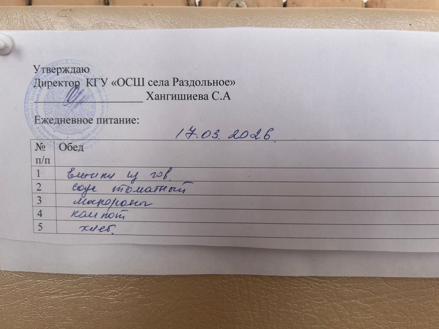 Мектептегі тамақтану 17.03.2026 ж.