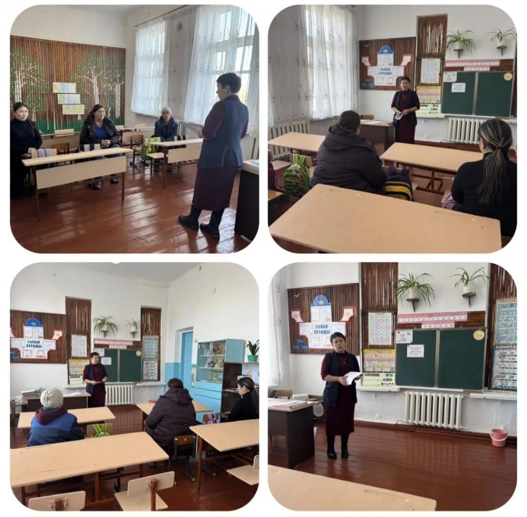 2025 жылдың 16 қыркүйегінде мектепте 1 сынып оқушыларының ата-аналарымен "бірінші сынып оқушыларын бейімдеу"тақырыбында сабақ өтті. Осы кезеңде ата-аналардың баланы қалай қолдай алатындығына ерекше назар аударылды: үйде тыныш және мейірімді атмосфера құру, күн тәртібін құру, толқуды жеңуге көмектесу және мектепке деген оң көзқарасты қалыптастыру. Сабақтың практикалық бөлігінде ата-аналар балалардағы мазасыздықты азайтуға, Тәуелсіздік пен өзіне деген сенімділікті дамытуға көмектесетін қарапайым жаттығулар мен ұсыныстармен танысты.